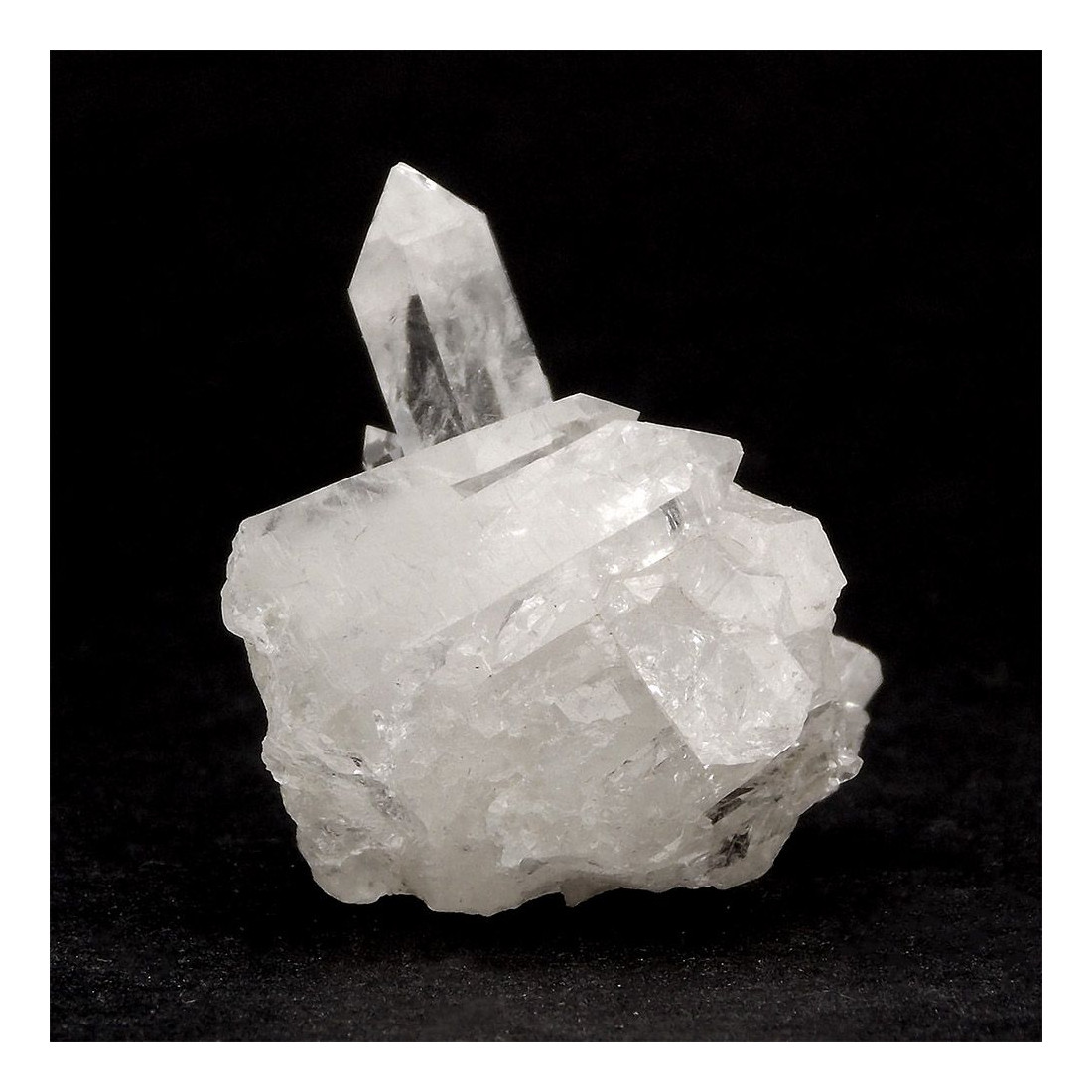 - Forme et aspect : Amas cristallin blanc transparent
