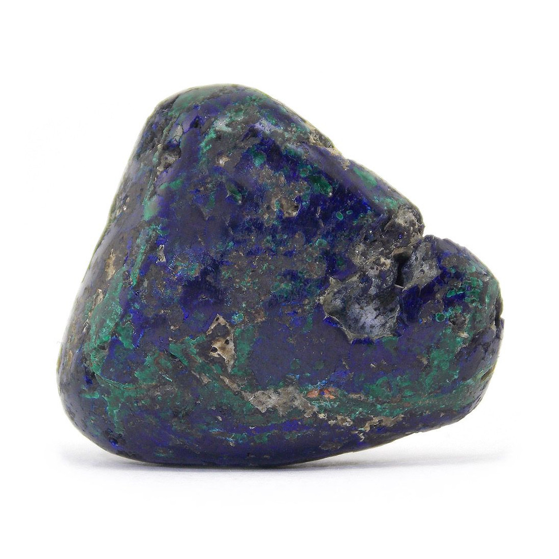 - Forme et aspect : Pierre roulée composée d'azurite (bleu foncé) et de malachite (vert foncé), aucune stabilisation n'a été effectuée.